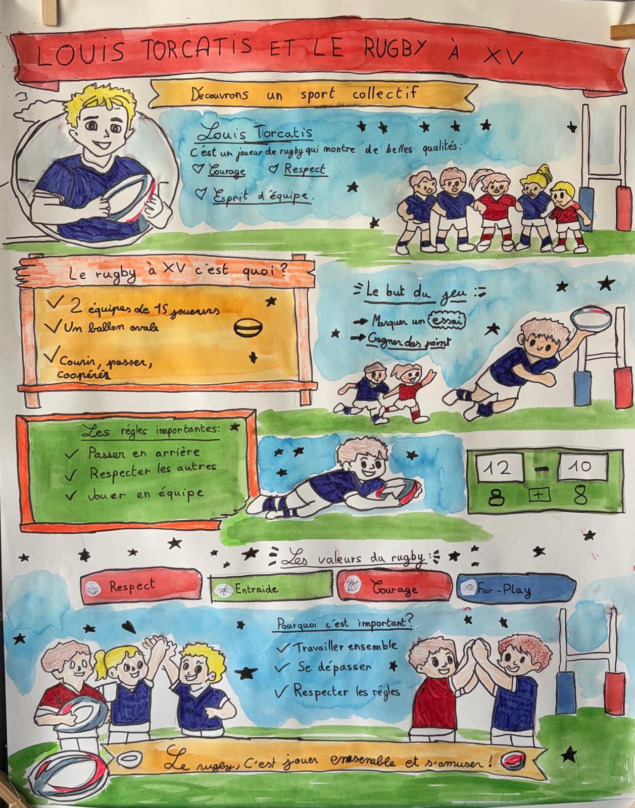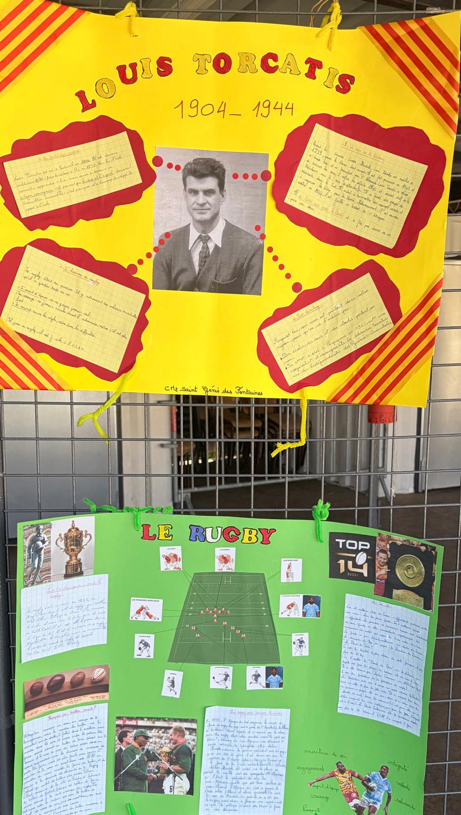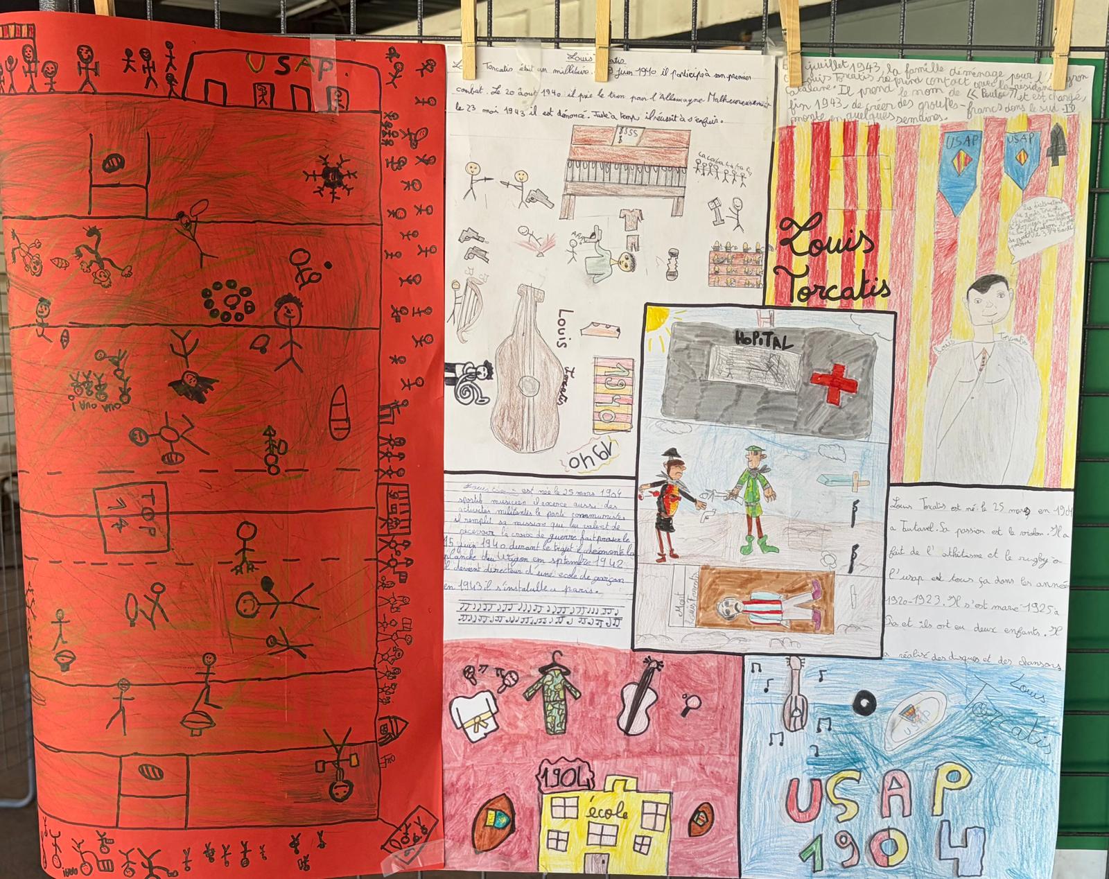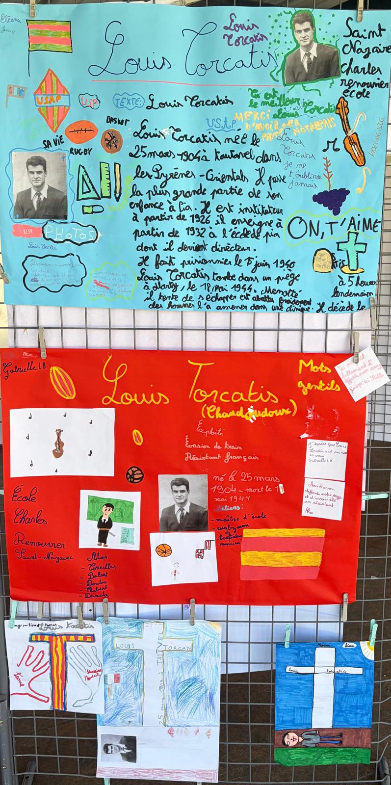 En amont de la rencontre, chaque classe participante a mené un travail autour de la vie et du parcours de Louis Torcatis. Exposés, affiches, dessins illustrant des épisodes marquants, récits imaginaires : les productions étaient libres dans la forme, mais toutes ancrées dans la même exigence — que les élèves connaissent et puissent raconter les grandes lignes de cette vie exemplaire.